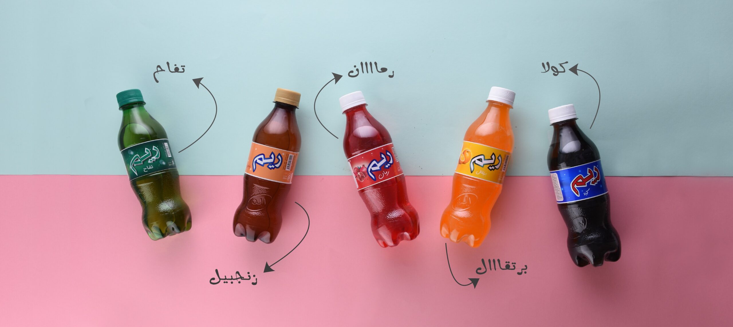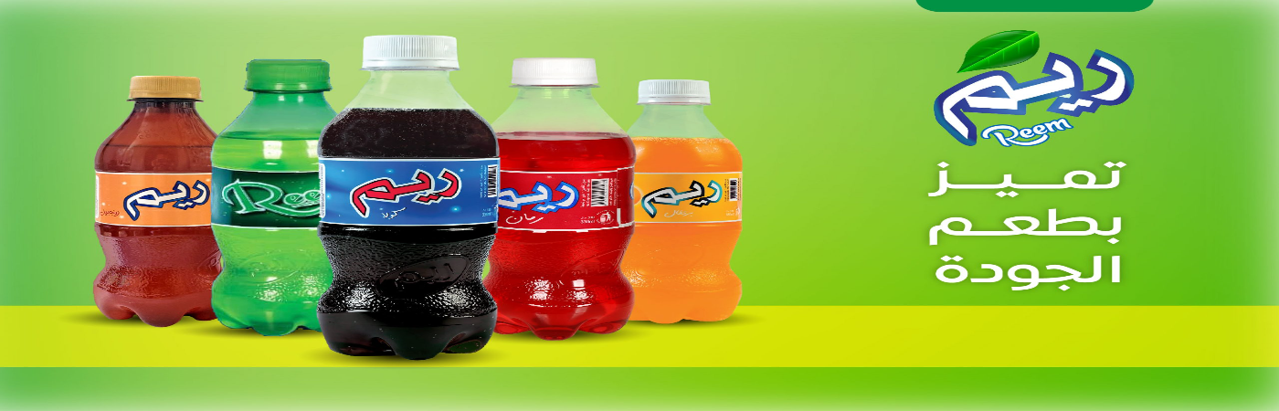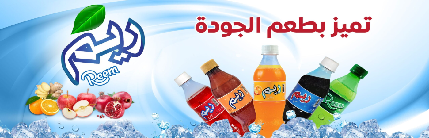 مشروبات ريم الغازية بنكهاته المتنوعة (كولا ، رمان ، برتقال ، تفاح ، زنجبيل).